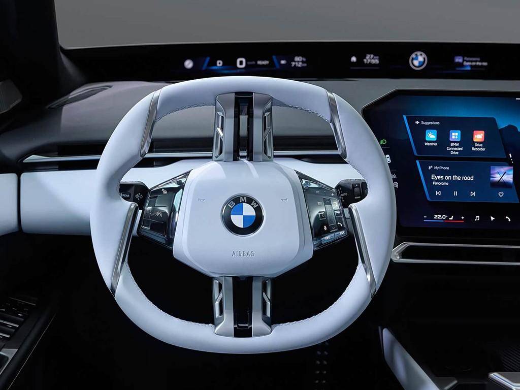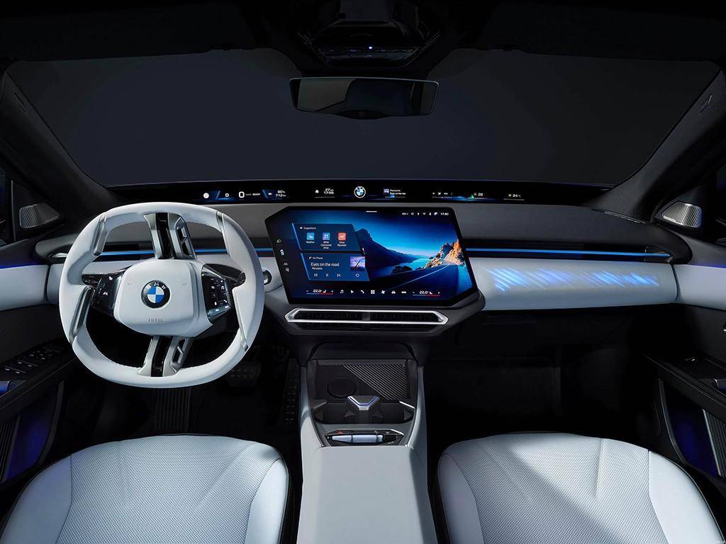 那块从挡风玻璃下沿投射出来的1.2米宽幅投影,取代了传统的仪表盘位置。说实话,第一次看到这个设计,我第一反应是:这玩意儿戴偏光墨镜能看清吗?但宝马说他们用纳米级涂层解决了这个问题,因此等实车到了后也强烈建议大家都去体验和验证下。