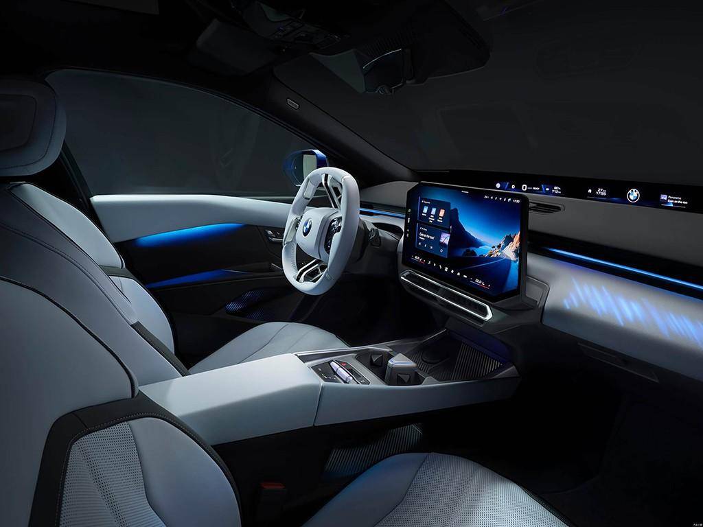 好处显而易见:车头显得更宽、更低趴,那种俯冲向路面的“鲨鱼鼻”姿态被进一步强化了。水平延伸的日间行车灯配合转向指示灯功能,为经典的“四眼”前脸造型赋予了电动时代的宝马精髓的全新诠释。